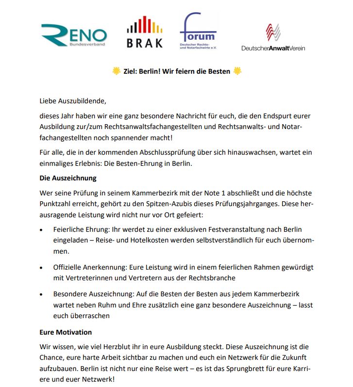 Die RENO Hamburg – Vereinigung der Mitarbeitenden von Rechtsanwälten, Notaren, Patentanwälten und Inkassounternehmen e.V. wendet sich an alle MitarbeiterInnen aus Rechtsanwaltskanzleien und Notariaten sowie an alle interessierten MitarbeiterInnen von Rechtsabteilungen, Verbänden und Unternehmen. Wir sind eine Arbeitnehmervereinigung im Sinne des Tarifvertrags- und des Berufsbildungsgesetzes.